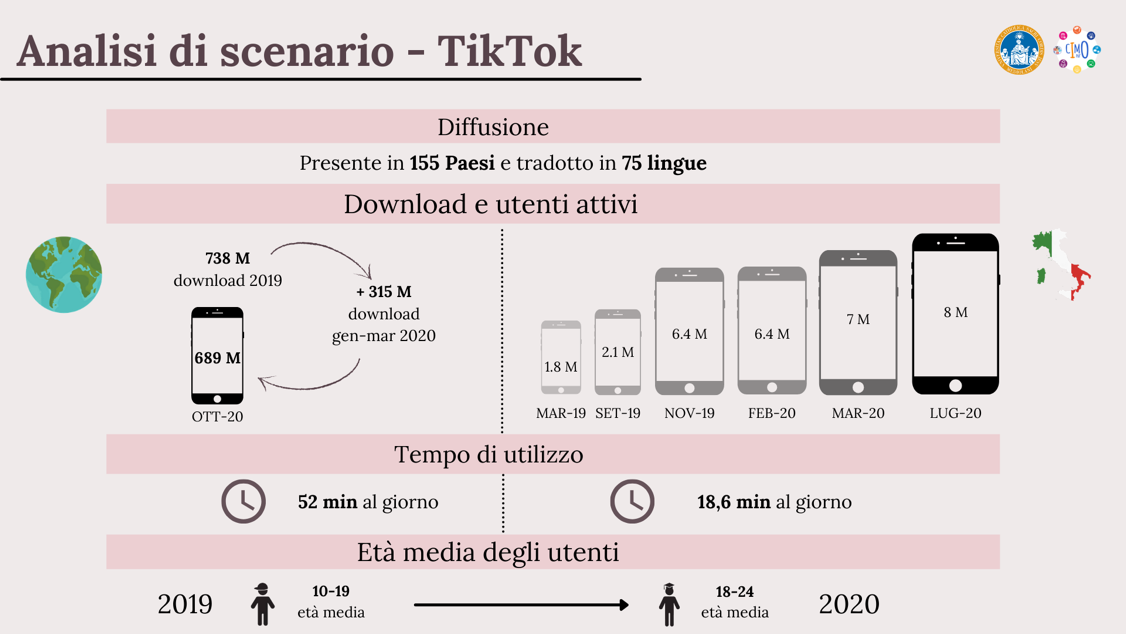 In questo contesto TikTok è cresciuto, ottenendo un boom di download e una maggiore visibilità culturale. Vi è stato poi uno slittamento verso un core target più “maturo”, corrispondente alla fascia d’età 18-24. Parallelamente l’app, attraverso vari trend quali contenuti trans-generazionali, l’edutainment, l’health communication per la sensibilizzazione alla lotta contro il Covid-19 e le ricette in pillole, è entrata nella routine della quarantena, guadagnandosi lo status di “isola felice” e accentuando la sua funzione evasiva.