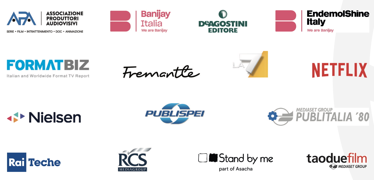 Tra i partner compaiono le più importanti realtà del panorama TV italiano e internazionale: APA Associazione Produttori Audiovisivi, Banijay, De Agostini Editore, EndemolShine Italy, Formatbiz, Fremantle, La7, Netflix, Nielsen, Publitalia '80, Publispei, Rai Teche, RCS, Stand by me, Taodue Film.